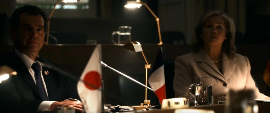 Параллельно развивается линия правительства. Борт номер один с Хелмсли, Анхаузером и дочерью президента Лорой (Тэнди Ньютон) летит к ковчегам. Сам президент Уилсон остаётся в Белом доме, чтобы разделить судьбу народа, и гибнет под обломками авианосца, накрывшего Вашингтон гигантской волной.