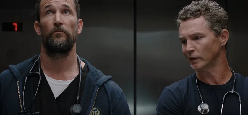 Финал смены (22:00): Самый тяжёлый час. Напряжение достигает пика. Робби переживает полный нервный срыв, поднимаясь на крышу. Ему удаётся взять себя в руки, и он объявляет конец смены. В последние минуты выясняется, что доктор Эбботт (ночная смена) — ветеран с протезом ноги, который готов принять дела. Команда выдыхает. Но в самом конце, когда врачи уже собираются на послесменную встречу, они видят приближающуюся карету скорой помощи. Робби понимает: завтра будет новый день.