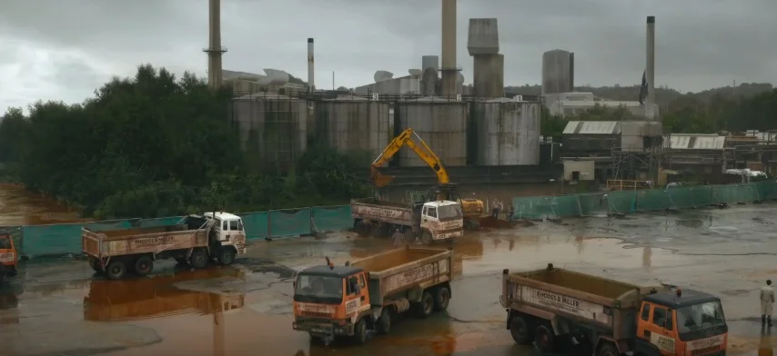 Сцена, где грузовики с отходами проезжают через жилые кварталы, была снята в Сент-Хеленсе, и местные жители жаловались, что их город показали «как ад на земле».