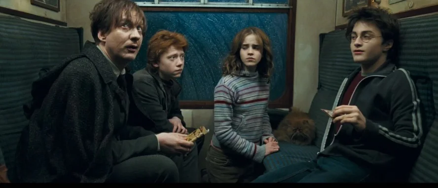 В Хогвартс-экспрессе друзья знакомятся с новым преподавателем Защиты от тёмных искусств — профессором Ремусом Люпином, который спит в углу купе. Внезапно поезд останавливается, становится холодно, и в купе проникают дементоры — стражи Азкабана. Гарри теряет сознание, услышав предсмертный крик своей матери. Люпин просыпается и изгоняет дементоров заклинанием «Экспекто Патронум».