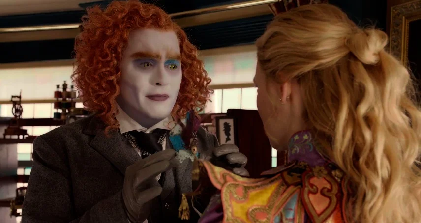 - Безумный Шляпник / Таррант Хайтопп (Джонни Депп) — эксцентричный и эмоциональный друг Алисы. Он убеждён, что его семья не погибла, а жива, и впадает в глубокую депрессию, переставая заботиться о себе. Его состояние ухудшается с каждым днём, и только Алиса может ему помочь. В фильме раскрывается его прошлое: когда он был маленьким, его семья погибла при нападении Бармаглота, и он до сих пор не может простить себе, что не смог их защитить.