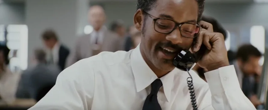 На работе Крис проявляет невероятную изобретательность. Чтобы максимизировать количество звонков потенциальным клиентам, он придумывает нестандартные ходы — не кладёт трубку между звонками, экономит каждую секунду, обзванивает крупных клиентов, нарушая протокол. Один из клиентов, Уолтер Риббон, приглашает Криса и его сына на матч San Francisco 49ers, где Крис знакомится с его друзьями — потенциальными клиентами.