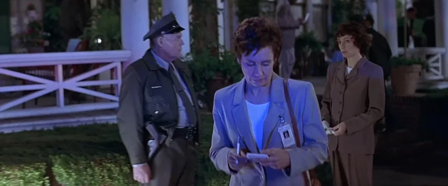 Дьюи, Гейл и Ренди обсуждают убийства. Ренди, как киноман, формулирует правила сиквелов: всё должно быть больше и кровавее, а убийца не обязательно мёртв.