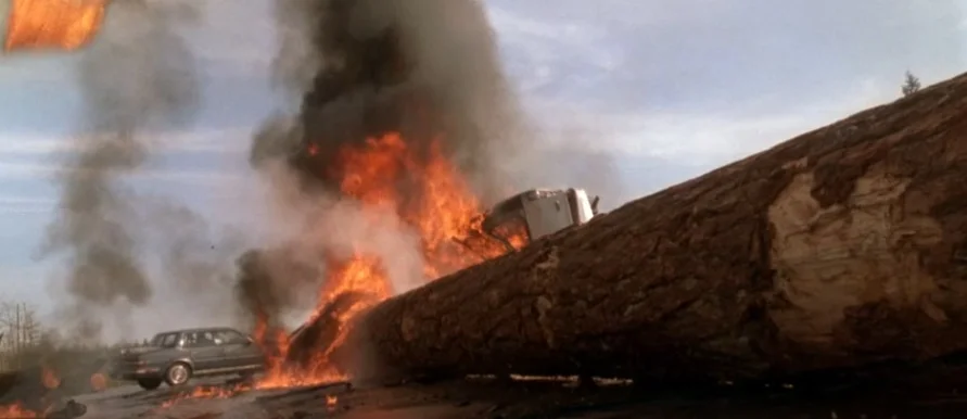 Брёвна, летящие с лесовоза, были созданы с помощью компьютерной графики, так как настоящие вели себя непредсказуемо.