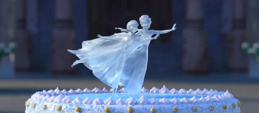 В начале фильма Эльза создаёт ледяную скульптуру, изображающую, как она обнимает застывшую Анну — прямая отсылка к финальным сценам оригинального фильма