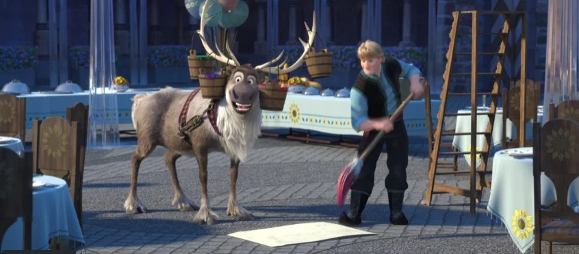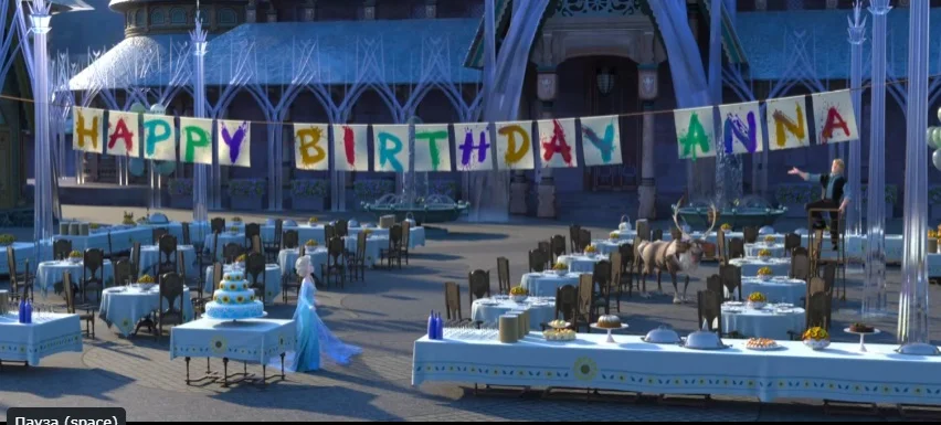 Анна убеждает Эльзу прекратить организацию праздника и отдохнуть. Для неё главное — не подарки и украшения, а здоровье и благополучие сестры. Это трогательный момент, подчёркивающий, насколько сильна их связь.