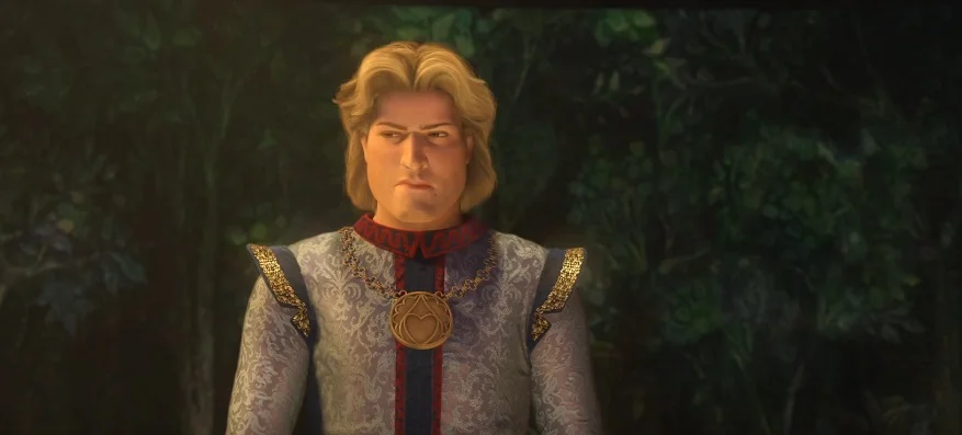 Чарминг готовится убить Арти, считая его главным конкурентом. Чтобы спасти юношу, Шрэк говорит, что Арти был всего лишь пешкой, которую он хотел подставить вместо себя. Чарминг верит и отпускает разозлённого Арти. Шрэка готовятся казнить на сцене.