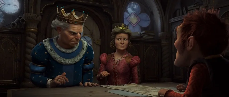 В ночь, когда Фиона планирует решающее сражение, отряд огров попадает в засаду Гамельнского крысолова, нанятого Румпельштильцхеном. Почти все огры пленены. Шрэку, Фионе, Ослу и Коту удаётся бежать. Шрэк пытается убедить Фиону поцеловать его, обещая, что это всё исправит. Фиона соглашается, но поцелуй не срабатывает — она не любит Шрэка.