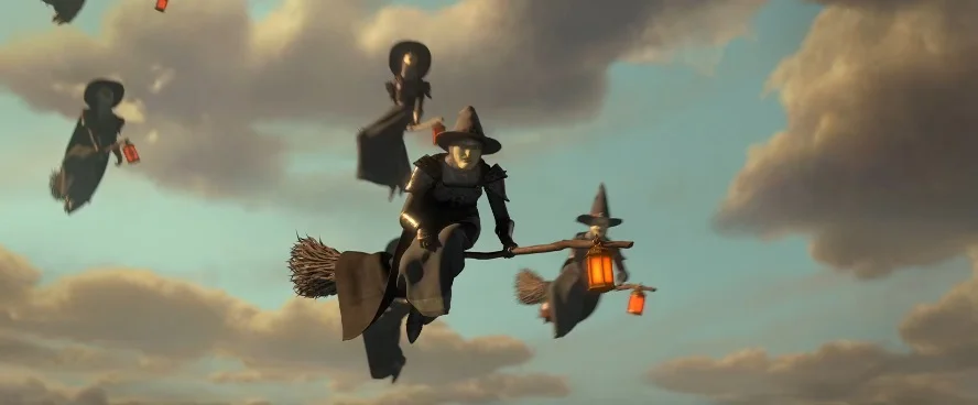 Сначала Шрэк радуется: он пугает крестьян, развлекается от души. Но когда он приходит на своё болото, то обнаруживает его иссохшим и заброшенным. Внезапно на него нападают ведьмы и усыпляют. Шрэк просыпается в клетке-карете, запряжённой Ослом, который его совершенно не узнаёт.