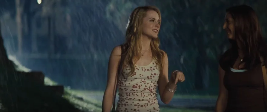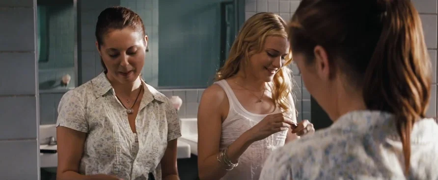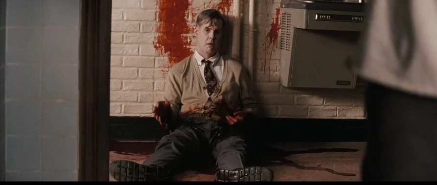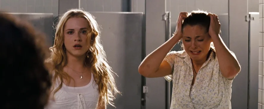Убийца врывается в туалет и направляет оружие на девушек. Он ставит их перед невозможным выбором: одна из них должна умереть. Морин, не колеблясь, предлагает себя: «Убей меня». Но стрелок, глядя на Диану, спрашивает: «Почему она должна жить?» В этот момент экран застывает. Мы не видим выстрела. Камера переключается на другое время.